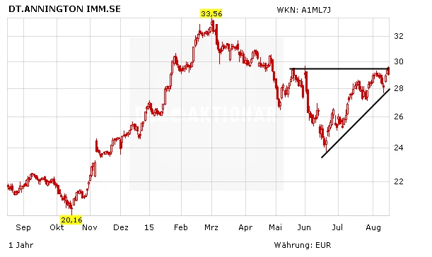 DER AKTIONÄR rechnet bei der Deutsche Anniington ebenfalls mit starken Zahlen. In Antizipation steigender Kurse wurde schon vor Wochen ein Turbo-Optionsschein ins Derivate-Musterdepot gekauft.