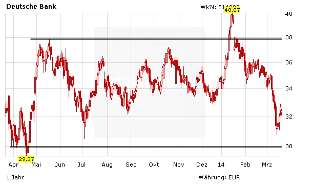 Die Deutsche Bank versucht derzeit, sich von ihren Altlasten zu trennen. Gelingt dies, kann die Aktie nachhaltig steigen. Bis die derzeitige Unterbewertung abgebaut ist, kann jedoch noch viel Zeit vergehen. Immerhin gelang nach der wochenlangen Talfahrt zuletzt bei rund 30,80 Euro der Turnaround. Geduldige Anleger bleiben dabei und beachten den Stoppkurs bei 30,50 Euro.
