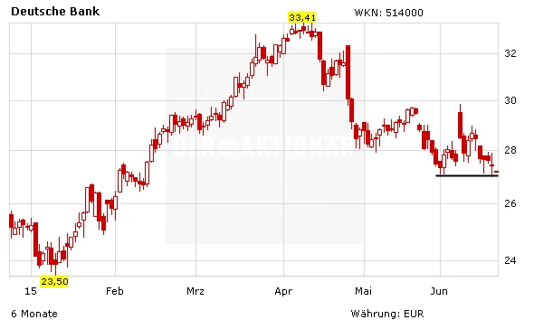 DER AKTIONÄR ist anderer Meinung. Die meisten Risiken sind im Aktienkurs der Deutschen Bank eingepreist. Zudem hat die Bank mit John Cryan einen exzellenten Sanierer an Bord geholt, der das Potenzial der Bank gewiss mittelfristig freisetzen kann. Mit einem Kurs/Buchwert-Verhältnis von 0,5 zählt der deutsche Marktführer zu den günstigsten Banken in Europa. DER AKTIONÄR sieht den fairen Wert bei 40 Euro, der Stopp sollte bei 24,50 Euro gesetzt werden.