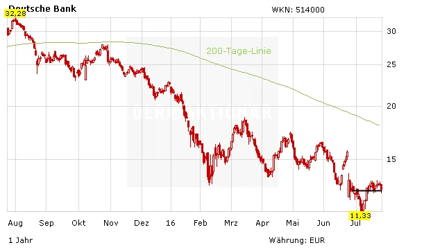 Die Deutsche Bank wird heute an der Börse in Sippenhaft genommen. Die Papiere fallen im Sog der enttäuschenden Quartalszahlen der Commerzbank. Neue Probleme drohen auch in den USA. Dort wurde einer Klage mit Streitwert 2,6 Milliarden Euro stattgegeben. (Angeklagter ist mal wieder die Deutsche Bank.)