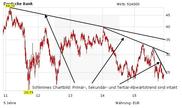 Die Aktie der Deutschen Bank legt am Dienstag gegen den Markt 1,1 Prozent zu. Allerdings ist die Bilanz 2016 schwach: Seit Jahresanfang steht ein Minus von 1,8 Prozent zu Buche, während der DAX 15,9 Prozent zugelegt hat. Die Aktie des deutschen Marktführers fiel vor einigen Wochen unter den Stoppkurs des AKTIONÄR. Ein Neueinstieg drängt sich derzeit nicht auf. Trader setzen lieber auf die Commerzbank.