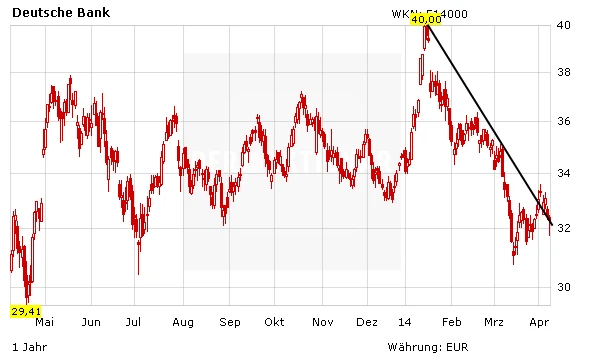 Die Marktkorrektur hat auch die Aktie der Deutschen Bank voll erwischt. Der Titel rutscht am Mittwoch unter den seit Anfang des Jahres gültigen Abwärtstrend. Damit drohen kurzfristig weitere Kursrücksetzer. Unterdessen warnt Konzernchef Jürgen Fitschen vor noch mehr Regulierung.