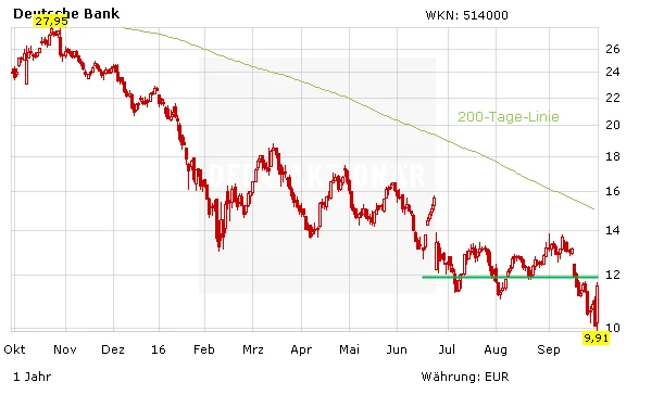 In den nächsten Tagen soll die Strafhöhe öffentlich bekannt gegeben werden. Für die Deutsche Bank würde die Strafe mit 5,4 Milliarden Dollar deutlich günstiger als die anfängliche Forderung des US-Justizministeriums von 14 Milliarden Dollar ausfallen. Nach der heutigen Achterbahnfahrt – die Titel verloren heute Morgen bis zu neun Prozent – geht die Woche glimpflich aus für Deutschlands größtes Geldhaus.