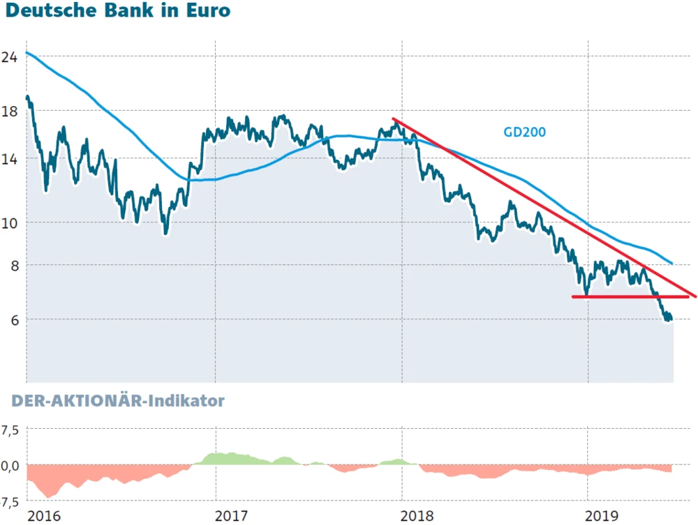 Konkrete Maßnahmen wird die Deutsche Bank wohl erst im Rahmen der Zwischenbilanz für das zweite Quartal am 24. Juli verkünden. In der Zwischenzeit bleibt die Aktie unter Druck. Am Freitag ist sie erneut unter die Marke von 6,00 Euro gerutscht, nachdem der Kurs in der Vorwoche bei 5,80 Euro einen neuen Tiefststand erreicht hatte. Angesichts des schwachen Charts und der strategischen Herausforderungen rät DER AKTIONÄR vom Kauf der Aktie ab.