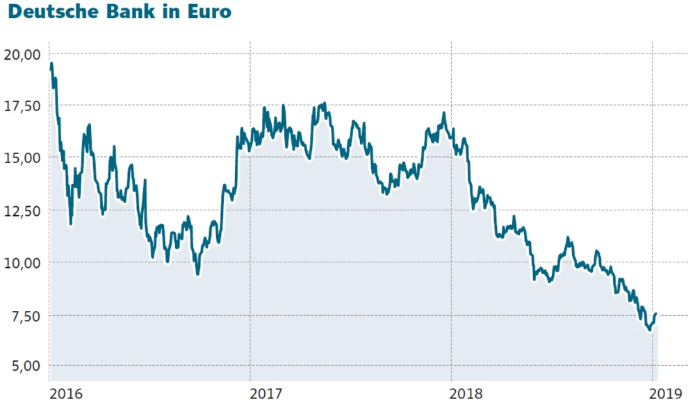 Die US-Investmentbank hat das Kursziel für Deutsche Bank von 8,00 auf 7,00 Euro gesenkt und die Einstufung auf „Underperform“ belassen. Die Erträge seien seit 2014 um fünf Milliarden Euro gesunken, während der Kapitalbedarf hoch und die Profitabilität gering bleibe, schrieb Analyst Andrew Stimpson zur Begründung. Inmitten der Umstrukturierungen sei 2019 bei der Ertragssituation noch nicht mit Besserung zu rechnen.