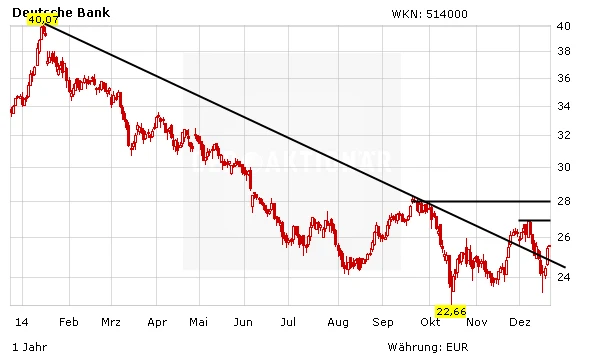 So schnell kann’s gehen. Am Mittwoch krachte die Deutsche-Bank-Aktie noch weiter nach unten. Am Donnerstag dann der Befreiungsschlag. Und am Freitag geht es mit der Aktie des deutschen Marktführers weiter aufwärts. Fällt nun bald schon die 28-Euro-Marke?