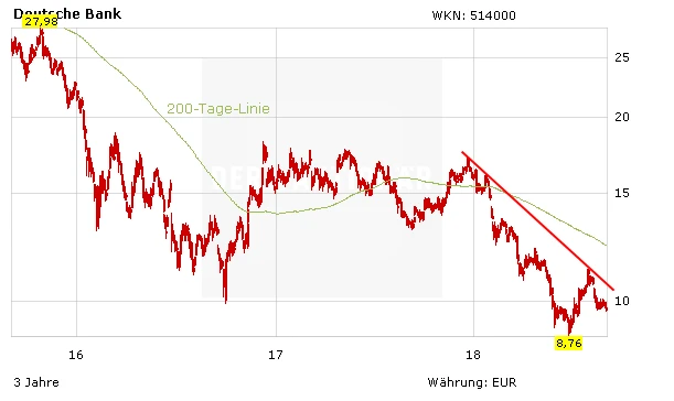 Die meisten traditionellen Bank-Häuser Europas bleiben an der Börse allgemein voraussichtlich weiterhin Underperformer, ein Investment drängt sich nicht auf. Lediglich Fusionsfantasie könnte den einen oder anderen Wert beleben. DER AKTIONÄR befürchtet, dass sich auf absehbare Zeit speziell bei der Aktie der Deutschen Bank innerhalb des Abwärtstrend nur Trading-Chancen ergeben werden. Längerfristig orientierte Investoren lassen die Finger weg.