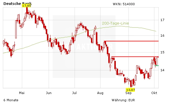 Auch wenn das Geschäft mit Immobilienfonds läuft, fehlt in den anderen Segmenten der Schwung. Das dritte Quartal wird zeigen, ob es Vorstandsvorsitzender John Cryan geschafft hat, verloren gegangene Marktanteile zurück zu gewinnen. Anleger kann die Bank bei Vorlage der Zahlen am 26. Oktober nur noch positiv überraschen.