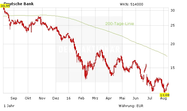 Nach Zahlen der Bundesbank stiegen im letzten halben Jahr die Einlagen bei deutschen Banken um durchschnittlich 2,8 Prozent. Die Deutsche Bank verlor dagegen ein Prozent ihrer Kundengelder. Experten befürchten, dass Kunden aus Sorge um ihr Geld ihre Ersparnisse abgezogen haben. Noch größere Zweifel an der Solvenz der Deutschen Bank schicken wiederum die Aktie in den Keller. Ein Teufelskreis entsteht.