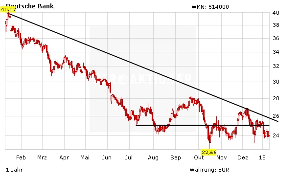Für das Führungsduo Jain und Fitschen wird es ernst. Nach einem Bericht des Manager Magazins ist der Aufsichtsrat nicht zufrieden mit der Performance des Vorstands und will bis spätestens Mai eine neue Strategie sehen. Diese soll dazu führen, dass der Buchwert deutlich gesteigert wird. Spannend wird es vor allem, wo die Deutsche Bank weiter den Rotstift ansetzen will. Die Kosten-Ertrags-Quote der Deutschen Bank lag zuletzt bei 77 Prozent – etliche Konkurrenten arbeiten merklich effizienter. DER AKTIONÄR hält an der Kaufempfehlung fest. Das Kursziel lautet 33 Euro, der Stopp sollte bei 21,50 Euro gesetzt werden.