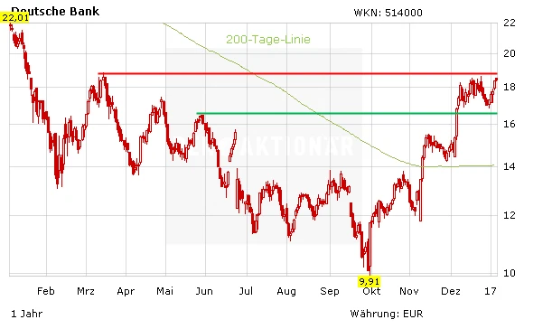 Die Deutsche Bank konnte charttechnisch zuletzt einigen Boden gut machen und steuert auf die Marke von 20 Euro zu. In der neuen Ausgabe des AKTIONÄR erfahren Anleger, was jetzt zu tun ist.