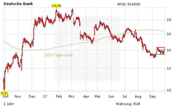 Ein Neueinstieg bei der Aktie der Deutschen Bank bietet sich derzeit nicht an. Wer investiert ist, bleibt dabei und beachtet den Stopp bei 12,50 Euro.
