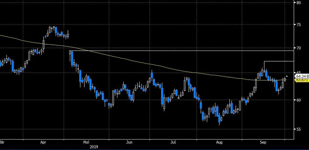 Auch charttechnisch sieht es nun wieder relativ gut aus. Wichtig für die weitere Kursentwicklung wäre nun, dass das September-Hoch bei 67,24 Euro überwunden wird. Sollte es gelingen, diesen Widerstand aus dem Weg zu räumen, würde sich das Chartbild weiter aufhellen. Dann könnte die BASF-Aktie in den kommenden Wochen – bleiben Störfeuer aus China oder den USA aus – im Idealfall das durch den Dividendenabschlag aufgerissene Gap zwischen 72,20 und 69,00 Euro schließen.