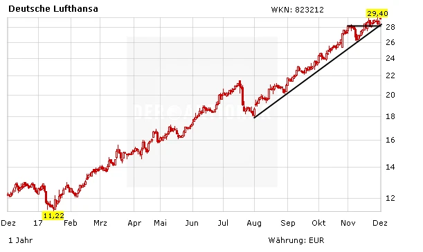 Indes gibt es Neuigkeiten bei der umstrittenen Übernahe von Teilen von Air Berlin: Die Lufthansa bietet den Kartellbehörden im Kampf um die ehemalige Nummer 2 im deutschen Luftfahrtmarkt nun konkrete Zugeständnisse an, damit die Übernahme durchgewunken wird. Die Wettbewerbshüter wollen bis zum 21. Dezember entscheiden, ob der Deal erlaubt wird.