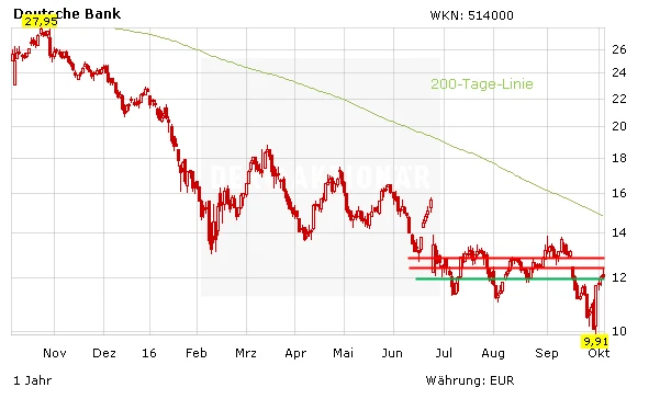 Bereits gestern Abend berichtete indes das Handelsblatt, dass sich mehrere Chefs von DAX-Konzernen für die Deutsche Bank stark machen. Demnach prüfen sie den Kauf von Aktien des Geldhauses, um dem Unternehmen unter die Arme zu greifen. Auch bei einer möglichen Kapitalerhöhung könnten die Großkonzerne zugreifen. Im Gespräch ist ein Hilfsbetrag in einstelliger Milliardenhöhe, falls die Rückstellungen der Deutschen Bank für die Strafe in den USA nicht ausreichen.