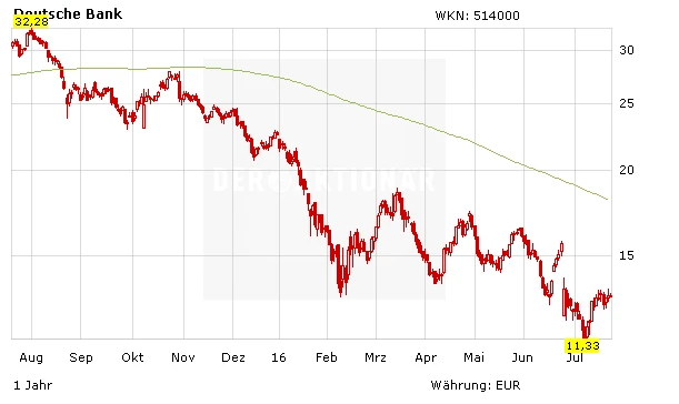 Die Experten vertreten allerdings eine Minderheitsmeinung. Real ist dagegen die Belastung durch die Niedrigzinsphase und die stärkere Regulierung. Vor allem wollen die Anleger aber wissen, wie das zukünftige Geschäftsmodell der Deutschen Bank aussehen soll. Das Management hält sich noch alle Optionen offen. Ob die Postbank nun verkauft werden soll, an die Börse kommt, oder alles beim Alten bleibt, weiß niemand. Auch wird nach Aussagen des Unternehmens schon länger an einem Modell mit Namen “Projekt Jade“ zur Umstrukturierung des Konzerns gearbeitet. Am Ende könnte es auf eine Aufspaltung in eine Investmentbank sowie eine Privatkundensparte hinauslaufen.