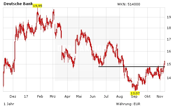 DER AKTIONÄR rät zum Kauf der Deutsche-Bank-Aktie bei einem Kursziel von 18,00 Euro. Mit einem Stopp bei 12,50 Euro sollte die Position abgesichert werden.