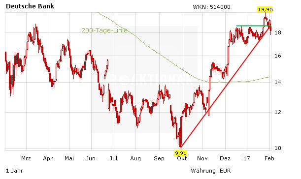 Die Bank muss zeigen, dass die schlechte Performance des letzten Quartals tatsächlich daran liegt, dass Kunden wegen der Rechtsstreitigkeiten keine Geschäfte mit dem Konzern machen wollten. Charttechnisch hat sich die Situation ebenfalls eingetrübt: Der mittelfristige Aufwärtstrend wurde bei 18,60 Euro nach unten gebrochen. Die nächste Unterstützung liegt im Bereich 18,06 Euro. Aufgrund der schlechten Zahlen und der Chartsituation bietet sich kein Neueinstieg an