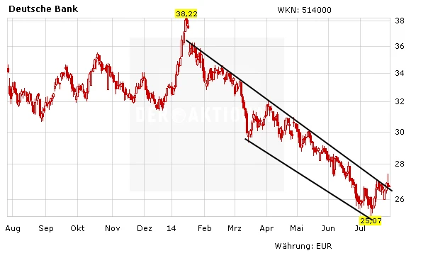 Neue Woche, neue negative Meldung über die Deutsche Bank. Allerdings hält sich das Minus der Aktie am Montag in Grenzen. Viel interessanter wird es sein, wie die Zahlen für das zweite Quartal und der Ausblick auf das Gesamtjahr ausfallen werden. Hierzu äußert sich die Deutsche Bank am Dienstag. DER AKTIONÄR hält an seiner Kaufempfehlung für mutige Anleger fest. Der Stoppkurs sollte bei 20,50 Euro gesetzt werden.