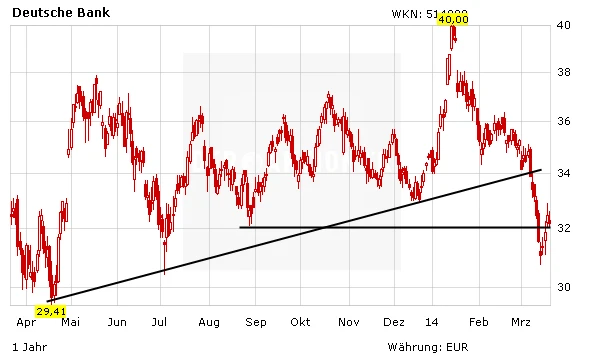 Der Deutsche-Bank-Vorstand betonte im Geschäftsbericht erneut, mit den Altlasten so schnell wie möglich aufräumen zu wollen. "Wir werden auch 2014 mit Nachdruck auf die Beendigung bestehender Verfahren hinarbeiten", so Co-Chef Jürgen Fitschen. Das wird auch langsam Zeit, damit die Aktie der Deutschen Bank endlich nachhaltig steigt. Bis die deutliche Unterbewertung komplett abgebaut sein wird, wird es aber noch sehr lange dauern. Wer geduldig ist, bleibt dabei und beachtet den Stoppkurs bei 30,50 Euro.