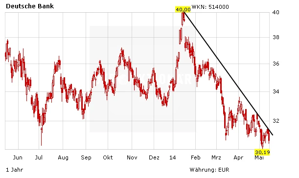 Die Meldung dürfte den Sektor belasten. Die Deutsche-Bank-Aktie verliert am Freitag 0,2 Prozent auf 30,68 Euro. Damit ist die Aktie nach Einschätzung der Analysten viel zu günstig bewertet. Das durchschnittliche Kursziel lautet 39,13 Euro. Am Donnerstag hat Daniel Davies seine Kaufempfehlung für den Titel bestätigt. Der Analyst von Exane BNP Paribas sieht das Kursziel bei 42 Euro.