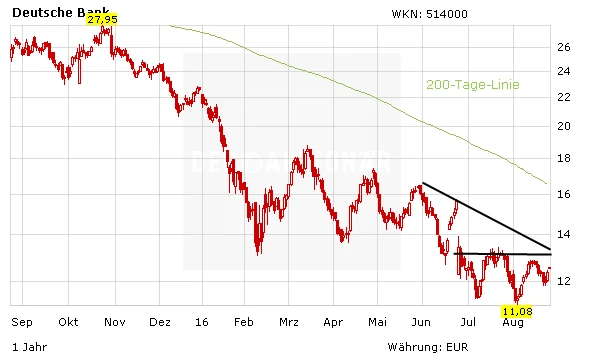 Vor dem wichtigen Treffen heute Abend dürfte es bei der Deutschen Bank-Aktie wenig Bewegung geben. Bekommt der Titel aber Rückenwind durch positive Aussagen von Yanet Yellen, wäre der Widerstand bei 13,40 Euro das nächste Ziel. Day-Trader können auf einen Test der Marke setzen, alle anderen halten sich zurück
