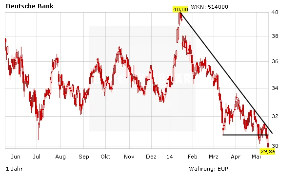 Bislang war HSBC immer besonders bullish für die Deutsche Bank. Das Kursziel lautete auf 47 Euro. Am Dienstagmorgen hat HSBC das Kursziel für den DAX-Konzern auf 41 Euro gesenkt. Das Rating lautet weiter auf „Übergewichten“.