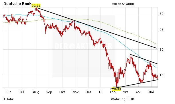 Die gesamte Bankenindustrie bewege sich in einer schwierigen Phase und strukturell im Abschwung. Profitabilität werde im Kerngeschäft nur schwer erreicht, hob der Analyst hervor. Die Postbank, die einige Anleger als möglichen Kapitalbringer für die Deutsche Bank ansehen, bringt aus Sicht von Chappell keinen zusätzlichen Wert. Er senkte sein Kursziel von 14 auf 9 Euro und sieht damit 39 Prozent Kursrisiko im kommenden Jahr.