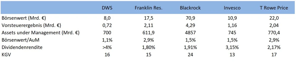 Peergroup-Vergleich DWS: