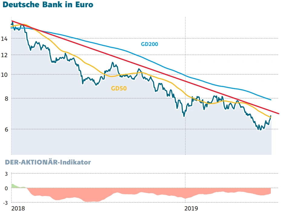 Unterstützt von den positiven News aus den USA legt die Deutsche-Bank-Aktie am Freitagvormittag bis zu vier Prozent zu. Damit kann sich der Kurs weiter von jüngsten Allzeittief absetzen und mit dem Sprung über die 50-Tage-Linie bei 6,70 Euro sogar wieder ein erstes technisches Kaufsignal erzeugen.