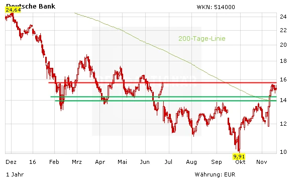 Die Unsicherheit bei der Deutschen Bank bleibt trotz der Einflussmöglichkeiten von Trump hoch. Am 4. Dezember könnte mit dem Referendum in Italien die Eurokrise wieder aufflammen und Bankaktien belasten. Die Aktie eignet sich daher nur für Trader.