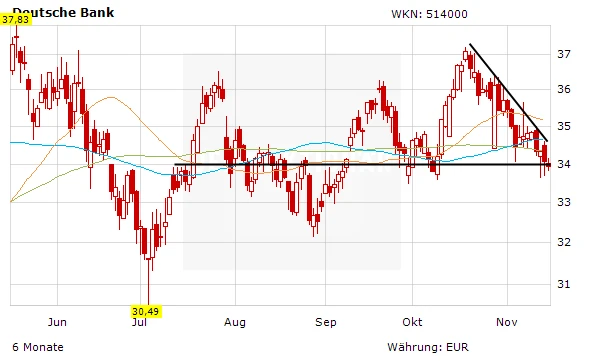 Charttechnisch notiert das Papier mittlerweile unter der 38-, 90- und 200-Tage-Linie. Der kurzfristige Abwärtstrend in intakt. Hoffnung auf einen kurzfristig positiven Verlauf macht hingegen die Unterstützung bei 34,00 Euro.