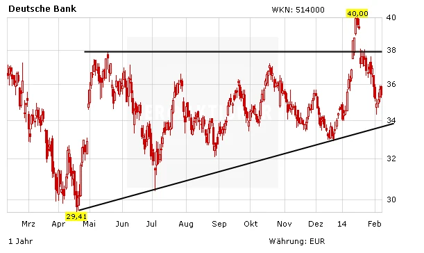 Sollte sich die Deutsche Bank mit den Kirch-Erben einigen, wäre das Unternehmen einen großen Unsicherheitsfaktor mit einem Schlag los. Das sollte der Aktie ordentlich Schub geben. DER AKTIONÄR hält den Titel für eindeutig zu günstig bewertet und hält an seinem Kursziel von 54 Euro fest. Der Stopp sollte bei 30,50 Euro platziert werden.