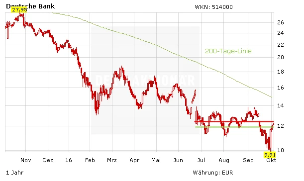 Der IWF empfiehlt der Deutschen Bank, gegenüber den Märkten mit einem „existenzfähigen Geschäftsmodell „ aufzutreten. Das Geldhaus gehöre in einem Umfeld schwächelnder Banken in Europa zu den Instituten, die sich in einem Transformationsprozess befinden würden, so Peter Dattels, stellvertretender IWF-Direktor für Kapitalmärkte. Der Prozess von einer Investmentbank hin zu einem neuen Geschäftsmodell sei noch nicht abgeschlossen. Die Banken in Europa sollten sich auf eine Phase niedriger Zinsen und politischer Unsicherheit einstellen, meint der IWF.