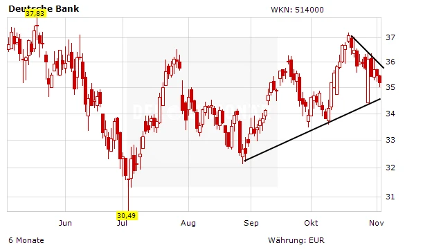Seit dem eindrucksvollen Intraday-Reversal nach dem Gewinneinbruch im dritten Quartal konsolidiert das Papier. Das liegt auch an der durchwachsenen Nachrichtenlage. Ende letzter Woche gab es Berichte, wonach der US-Immobilienfinanzierer Fannie Mae das deutsche Kreditinstitut wegen mutmaßlicher Manipulation des Geldmarktzinssatzes Libor verklagt habe.