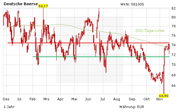 Auch wenn die EU-Kommission Bedenken angemeldet hat: Die Deutsche Börse kann immer noch Beteiligungen verkaufen, um die Vorgaben der Regulierer zu erfüllen. Durch die weltweit steigenden Zinsen und die politische Unsicherheit dürfte die Deutsche Börse als Marktbetreiber außerdem in den nächsten Monaten von erhöhter Volatilität profitieren. Eine Dividendenrendite von 3,1 Prozent begrenzt das Abwärtspotenzial. Für den AKTIONÄR ist die Aktie ein Kauf, das Kursziel liegt unverändert bei 90 Euro, ein Stopp bei 60 Euro sichert die Position ab.