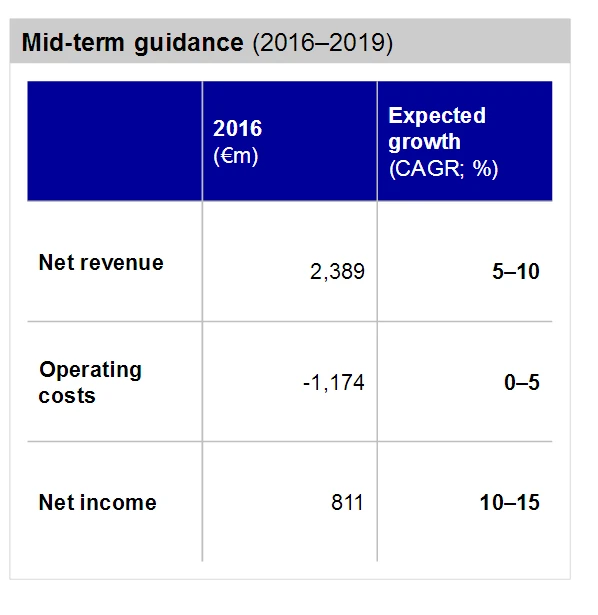 Wie aus einer Unternehmenspräsentation anlässlich einer Investorenkonferenz in London hervorgeht, soll der Umsatz zwischen 2017 und 2019 jährlich um fünf bis zehn Prozent wachsen. Beim Gewinn peilt die Deutsche Börse sogar Zuwächse von durchschnittlich zehn bis 15 Prozent an. Damit hat das Unternehmen seine Prognose für das laufenden und das kommende Jahr um ein weiteres Jahr verlängert.