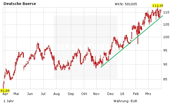 Hohe Handelsvolumina, wie in der letzten Zeit oft gesehen, spielen dem DAX-Wert voll in die Karten. Die britische Großbank HSBC bezeichnet die Deutsche Börse sogar als größten Profiteur der hohen Volatilität an den Märkten. Mit dem Handelssystem Xetra und der Derivate-Terminbörse Eurex sei man bestens aufgestellt. Analyst Johannes Thormann passte dementsprechend auch seine Prognosen an. Das Kursziel hob er von 114 auf 123 Euro, die Einstufung bleibt auf „Buy“. Auch der Citigroup-Analyst Owen Jones bestätigte vor wenigen Tagen das Buy-Rating mit einem Kursziel von 125 Euro.