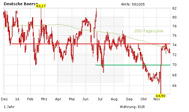 Egal, ob der Zusammenschluss mit der London Stock Exchange am Ende gelingt oder nicht: Die Deutsche Börse dürfte in Zukunft von steigender Volatilität durch die politische Unsicherheit profitieren. Langfristig bieten Technologien wie die Blockchain zudem erhebliche Kosteneinsparungen. Zuletzt hat sich auch das charttechnische Bild wieder aufgehellt. Gelingt der nachhaltige Sprung über die 200-Tages-Linie bei 73,42 Euro, würde ein neues Kaufsignal generiert werden. Unterstützung sollte der Kurs bei 70,00 Euro finden, eine Dividendenrendite von 3,1 Prozent begrenzt zusätzlich das Abwärtspotenzial. Anleger können an schwachen Tagen zugreifen, das Ziel des AKTIONÄR liegt bei 90,00 Euro. Der Stopp sollte bei 60,00 Euro markiert werden.