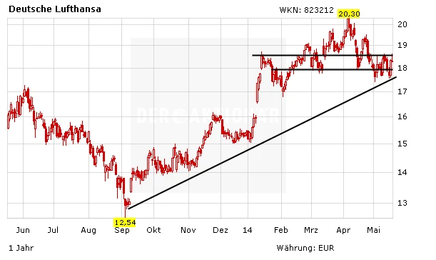 Nach einem starken Jahresauftakt geriet die Lufthansa-Aktie zuletzt in Turbulenzen. Die horizontale Unterstützung an der 18-Euro-Marke hat zuletzt gehalten. Gelingt der Ausbruch über die 18,50-Euro-Marke, wird ein neues Kaufsignal ausgelöst.