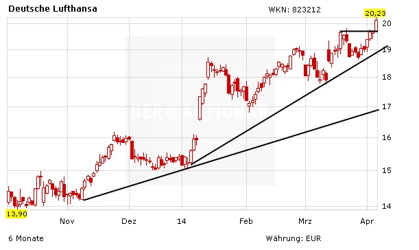 Charttechnisch sieht es dennoch hervorragend aus. Mit dem Ausbruch über den Widerstand im Bereich des alten Jahreshochs bei 19,72 Euro ist der Weg nach oben frei. Das nächste Etappenziel liegt bei 22,00 Euro. Anleger lassen ihre Gewinne laufen. Ein Stopp bei 16,00 Euro sichert ab.