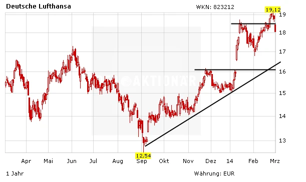 Zuletzt geriet die Lufthansa-Aktie aufgrund der Unsicherheiten über die weitere Entwicklung in Russland ins trudeln. Investierte Anleger bleiben dennoch an Bord. Der Vorstand überzeugte zuletzt mit den optimistischen Aussagen für das laufende Jahr. Mit einem KGV von 13 ist der Konzern außerdem nach wie vor relativ günstig bewertet.