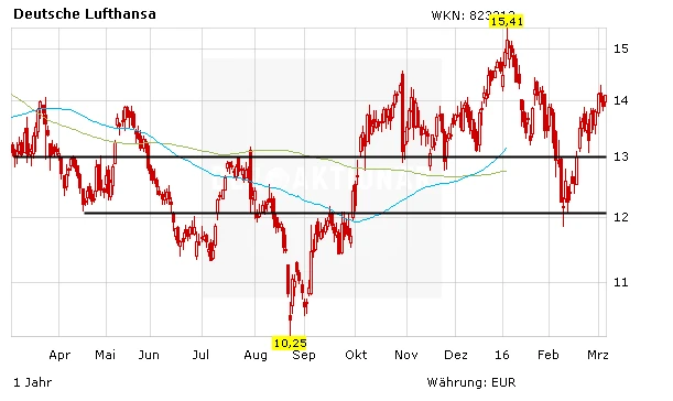 DER AKTIONÄR findet derzeit keine charttechnischen Impulse. Die könnten von den Jahreszahlen 2015 kommen, welche am Donnerstag, 17. März, veröffentlicht werden sollen. Es gibt bessere Alternativen, daher sollten Anleger bei der Airline an der Seitenlinie bleiben.
