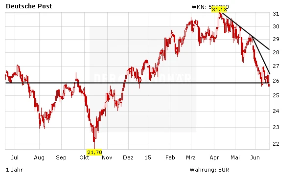 Im schwachen Marktumfeld ist die Aktie der Deutschen Post am Donnerstag weiter unter Druck geraten. Die Papiere des Logistikriesen setzen die Talfahrt der letzten Wochen damit fort. Neben den anhaltenden Streiks belastet auch ein negativer Analystenkommentar.