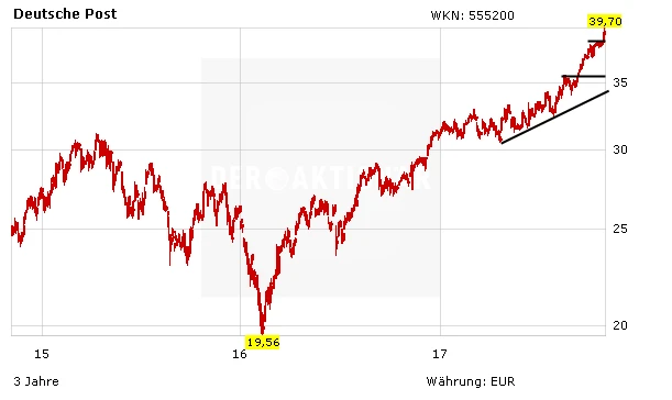 Indes hat die Citigroup das Kursziel für die Post-Titel auf 44,00 Euro angehoben und rät ebenfalls zum Kauf. Analyst Ed Steele betonte, der Konzern sei auf einem guten Weg, die für 2020 gesteckten Ziele zu erreichen. Darüber hinaus sollte der Logistiker nach wie vor vom Wachstum des Online-Handels profitieren.