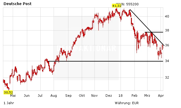 Trotz der jüngsten Eintrübung des Chartbildes bleibt DER AKTIONÄR für die Aktie der Deutschen Post grundsätzlich zuversichtlich gestimmt. Die Perspektiven bleiben gut und die Bewertung ist im Branchenvergleich nach wie vor günstig. Anleger können zugreifen, der Stopp sollte bei 31,50 Euro belassen werden.