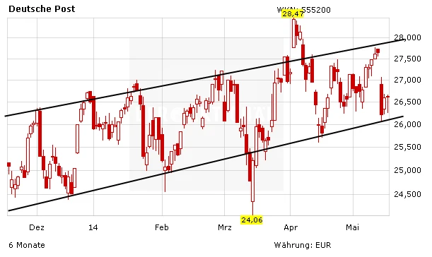 Kurzfristig könnte der Bericht zu den Dumping-Preisen der Deutschen Post die Aktie unter Druck bringen. Solang lang sich diese Gerüchte allerdings nicht bestätigen gibt es für Anleger keinen Grund zur Sorge. Außerdem ist der Konzern international hervorragend aufgestellt. Das Kursziel liegt nach wie vor bei 33 Euro. Investierte Anleger sollten ihre Position mit einem Stopp bei 23 Euro absichern.