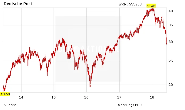 Für das Jahr 2020 erwarten die Analysten im Durchschnitt einen Umsatz von 67,2 Milliarden Euro, einen Gewinn von 2,49 Euro je Aktie und ein EBIT von 4,7 Milliarden Euro – damit würde die Post auch ihr jüngst erneut bestätigtes Mittelfrist-Ziel von einem EBIT von 5,0 Milliarden Euro verfehlen.