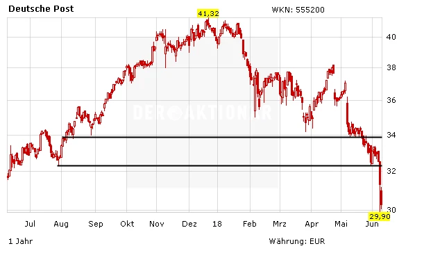 So hat HSBC-Analyst Edward Stanford die DAX-Titel von „Buy“ auf „Hold“ zurückgestuft und das Kursziel von 40,50 auf 30,50 Euro kräftig zurückgeschraubt. Wegen der Probleme in der Brief- und Paketsparte kürzte er seine Gewinnprognose für das laufende Jahr. Darüber hinaus geht er davon aus, dass der Konzern auch seine mittelfristigen Ziele nicht erreichen werde – was natürlich ein weiterer schwerer Schlag für die Kursentwicklung wäre.