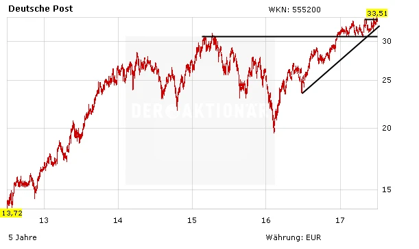 Dies ist nachvollziehbar. Denn in einigen Monaten beginnt die für Logistiker besonders lukrative Zeit. Denn dank des anhaltenden Paketbooms dürfte auch das Weihnachtsgeschäft 2017 bei der Post wieder für neue Rekordmarken sorgen. Dies ist auch einer der Gründe, weshalb die Aktie gerade im vierten Quartal meist deutlich zulegen konnte.